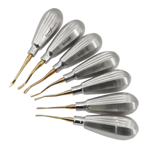 A dental instrument designed to fit in tight apical spaces and smoothly cut the periodontal ligament during small animal extraction surgery.